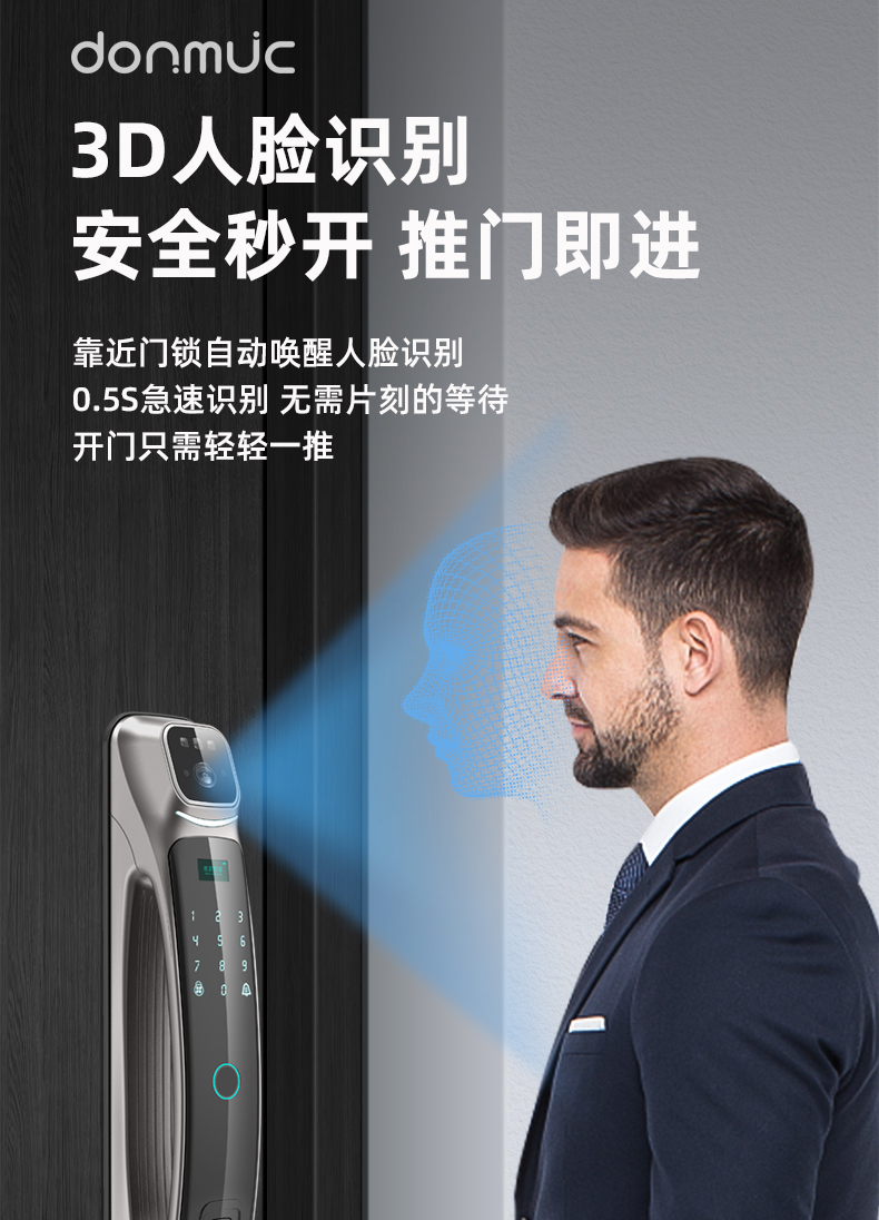 Smart lock-3d face recognition smart door lock automatic smart lock-3d face recognition, palm recognition, key, password, remote door opening, monitoring, 3000 Ma lithium battery, electronic doorbell; Anti prying alarm; Try to unlock the alarm and lock th