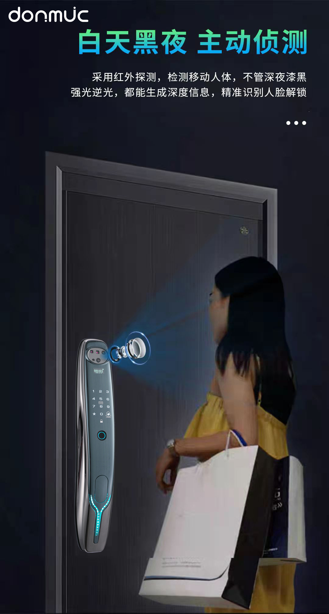 Smart lock-3d face recognition smart door lock automatic smart lock-3d face recognition, palm recognition, key, password, remote door opening, monitoring, 3000 Ma lithium battery, electronic doorbell; Anti prying alarm; Try to unlock the alarm and lock th