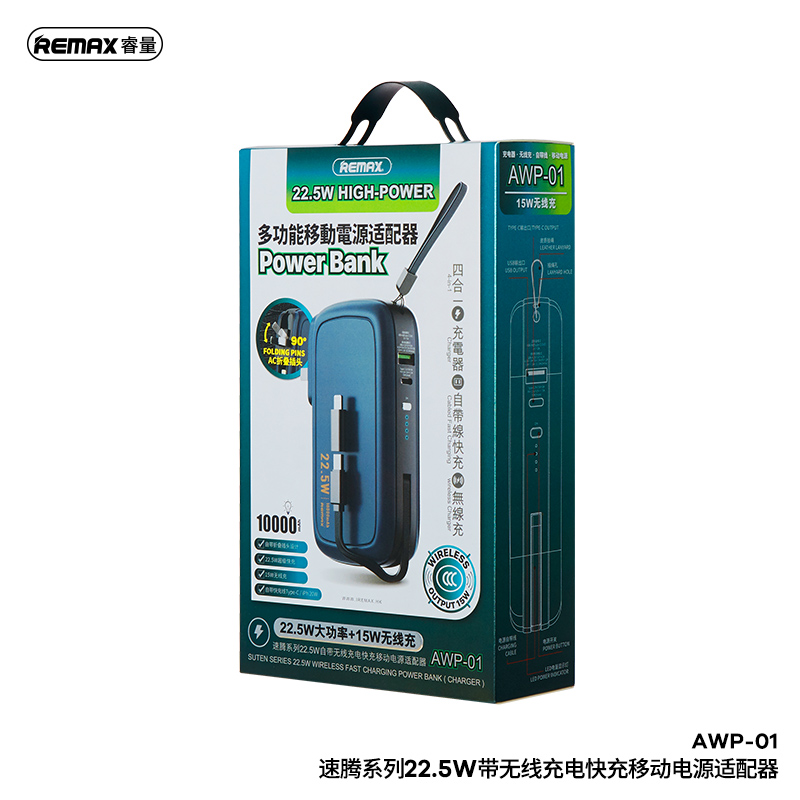 o Supports 15W wireless charging.compatible with 5W/7W/10W.@ Multiple output ports, fast chargingfor four devices at once. With TYPE-C fast charging cable andIPH fast charging connector. Supports PD/QC multi-protocol fast charge outputsupports mainstream mobile phones in the marketo Hidden AC folding plugs, wide voltage use. With a portable laryard, easy to carry around.