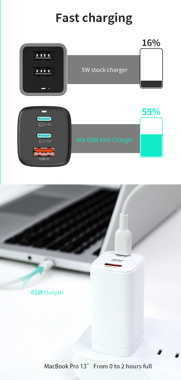 C1+ C2+ USB-A:45W+15W (60W MAX)