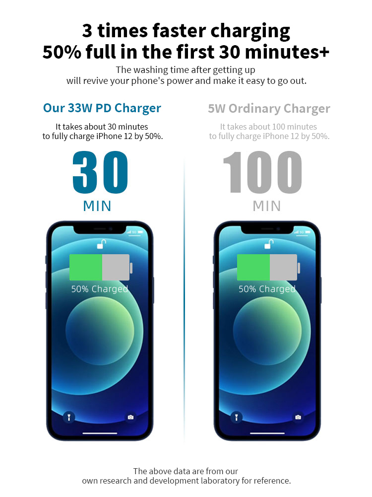 5W Ordinary ChargerIt takes about 100 minutesto fully charge iPhone 12 by 50%6.