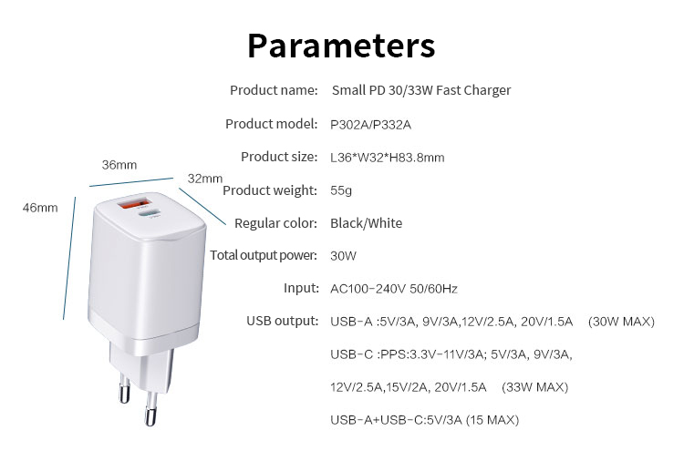 Pocket size 30/33W, high power, no damage, Qc3.0, 50% reduction in volume, 30 minutes full, 50% charge, safe and compatible with Apple and Android