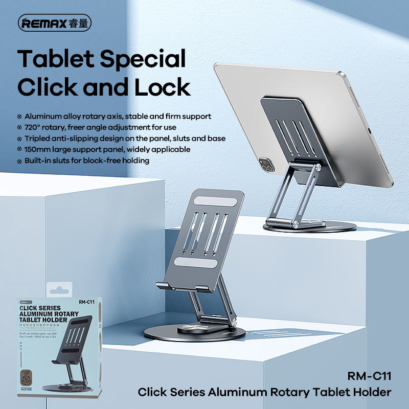 Aluminum alloy rotary axis, stable and firm support 720° rotary, freer angle adjustment for useo Tripled anti-slipping design on the panel, sluts and base 150mm large support panel, widely applicable Built-in sluts for block-free holding
