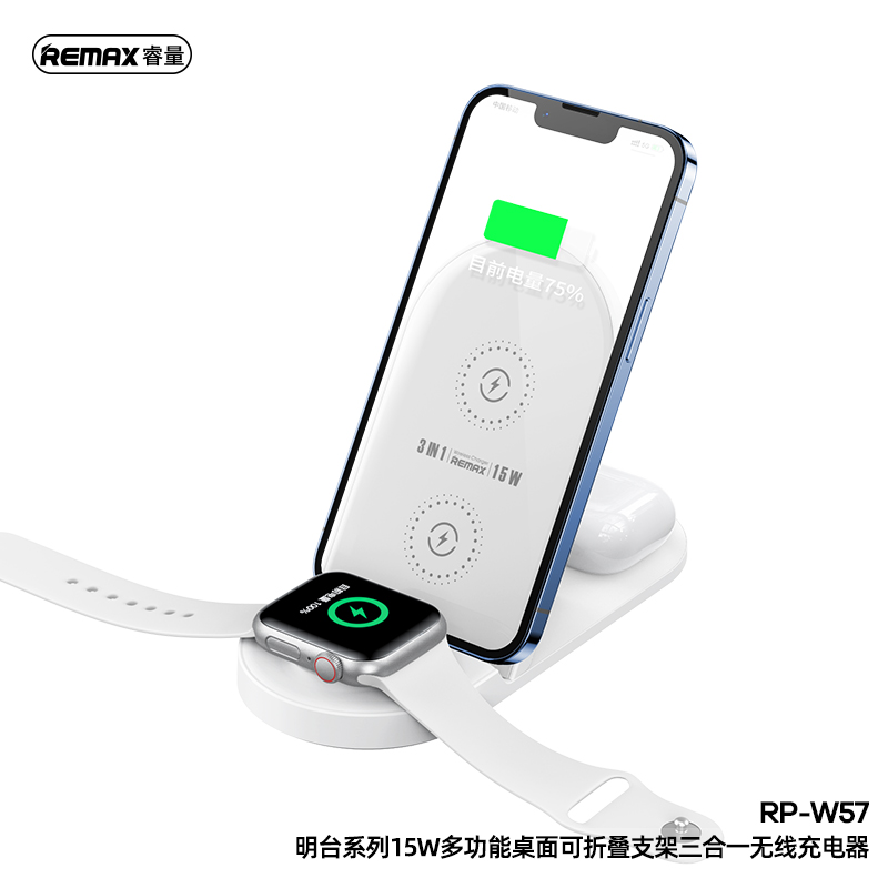 RP-W57Mintai Series15W MultifunctionalFoldable 3-in-1 Wireless Charger;Phone+Earbuds+Watch