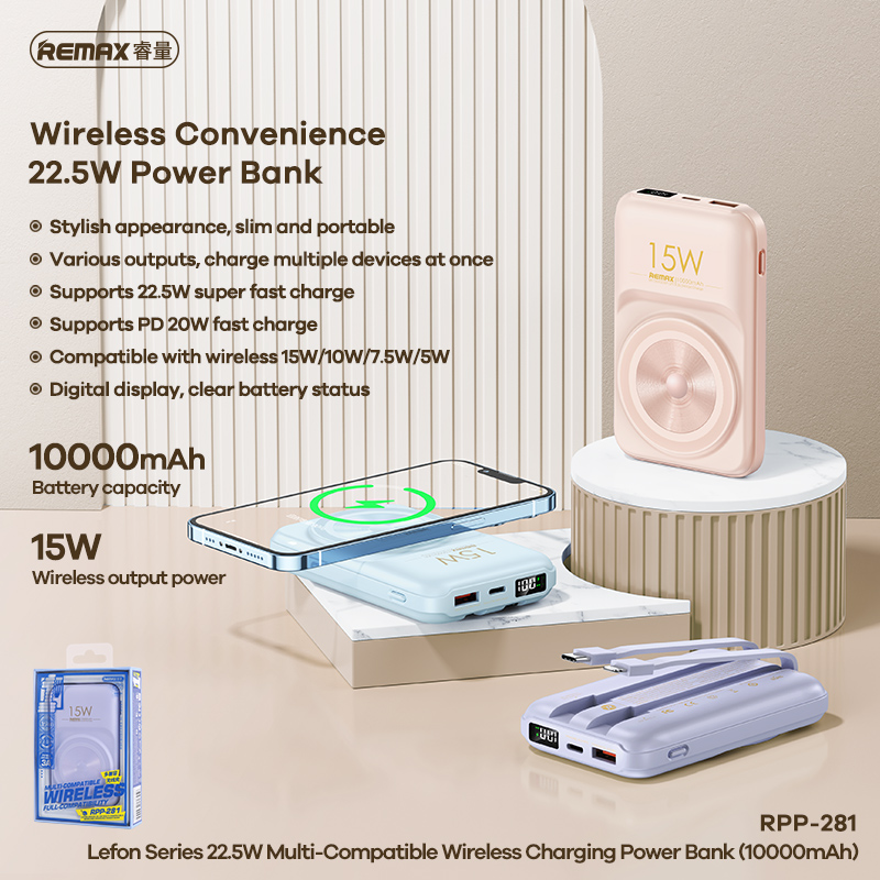 RPP-281 Lefeng Series 22.5W Multi compatible Wireless Charging Mobile Power Supply