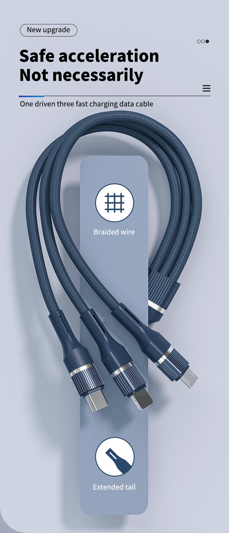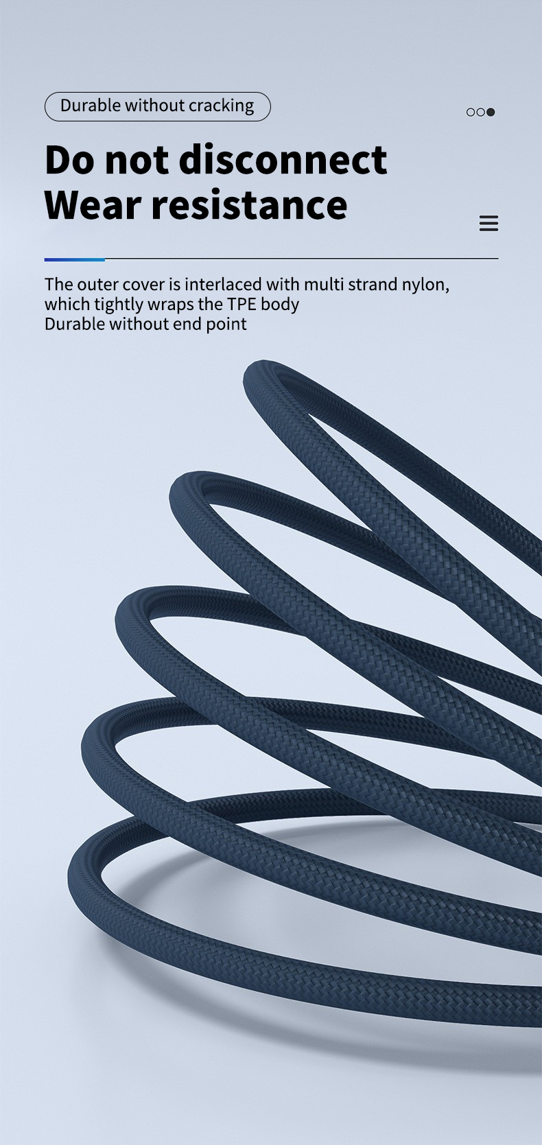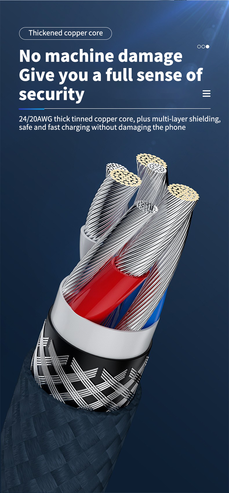 24/20AWG thick tinned copper core, plus multi-layer shielding.safe and fast charging without damaging the phone;Upgrade 66WOne driven threefast charging lines;Upgrade weavingNylon thread body
